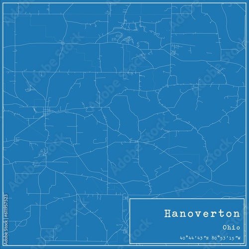 Fototapeta premium Blueprint US city map of Hanoverton, Ohio.