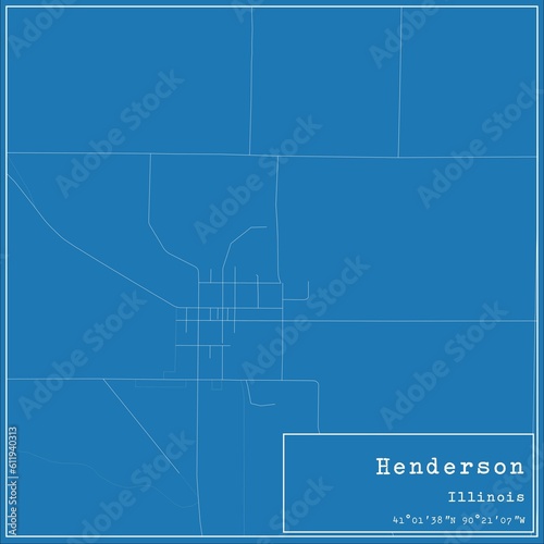 Obraz premium Blueprint US city map of Henderson, Illinois.