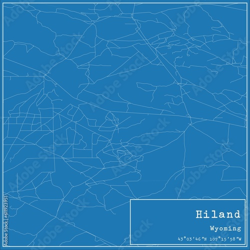 Fototapeta premium Blueprint US city map of Hiland, Wyoming.