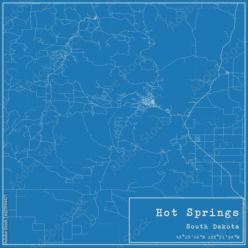 Fototapeta premium Blueprint US city map of Hot Springs, South Dakota.