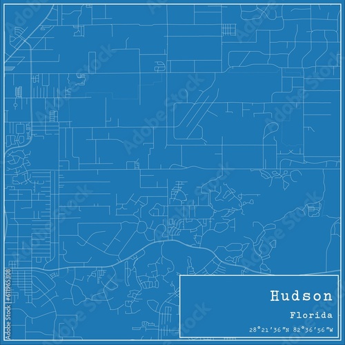 © Rezona, Fototapeta premium Blueprint US city map of Hudson, Florida.