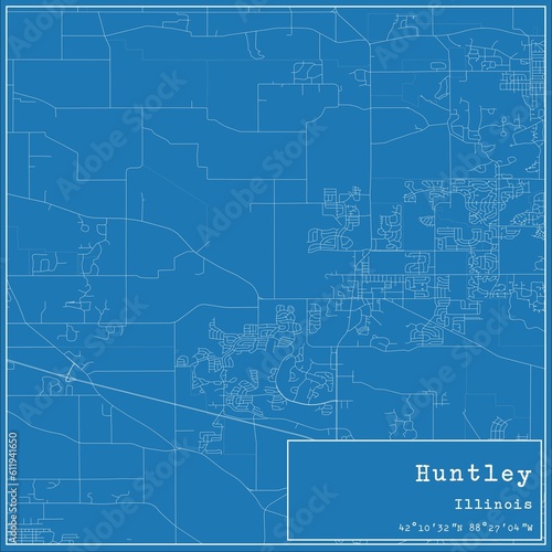 Fototapeta premium Blueprint US city map of Huntley, Illinois.
