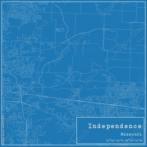 Fototapeta premium Blueprint US city map of Independence, Missouri.