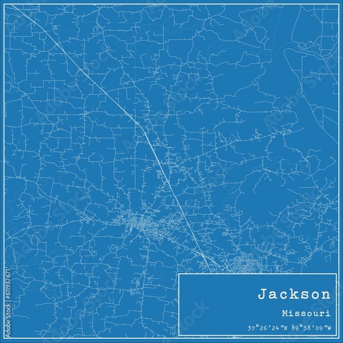 Obraz premium Blueprint US city map of Jackson, Missouri.