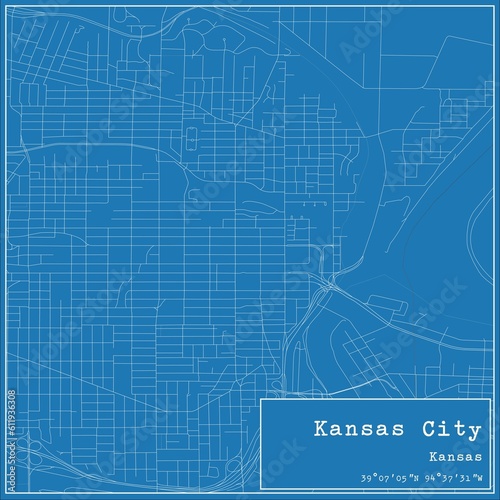 Fototapeta premium Blueprint US city map of Kansas City, Kansas.