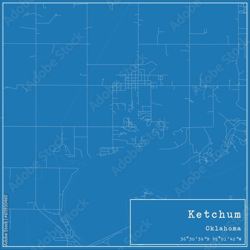 © Rezona, Naklejka premium Blueprint US city map of Ketchum, Oklahoma.