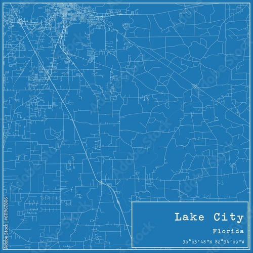 Fototapeta premium Blueprint US city map of Lake City, Florida.