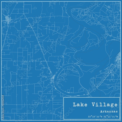 © Rezona, Naklejka premium Blueprint US city map of Lake Village, Arkansas.