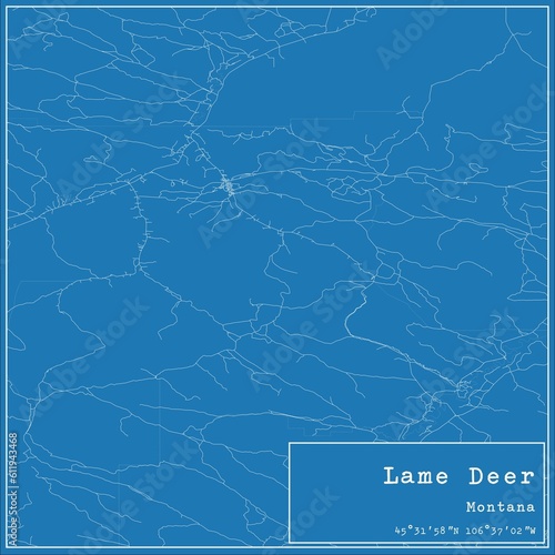 Fototapeta premium Blueprint US city map of Lame Deer, Montana.
