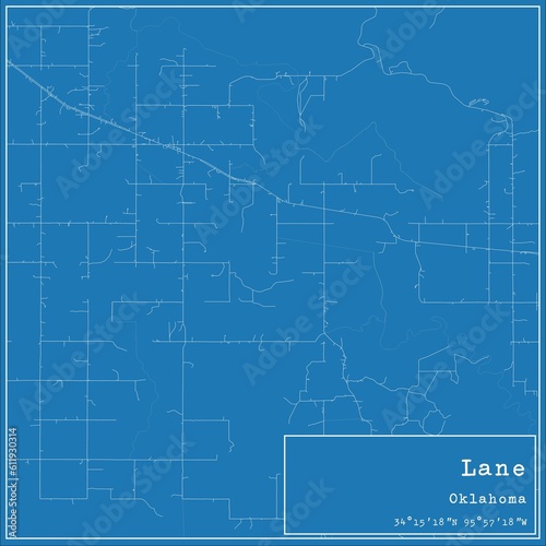 Fototapeta premium Blueprint US city map of Lane, Oklahoma.