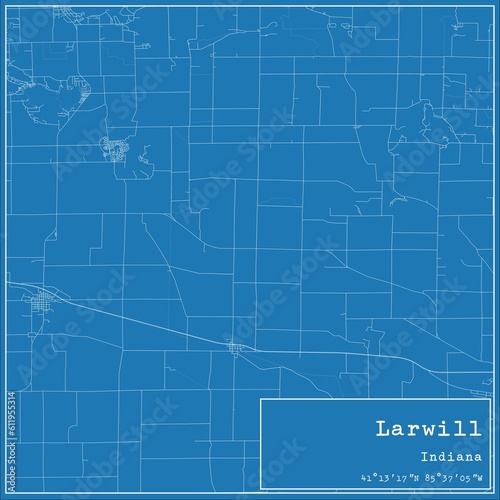 © Rezona, Fototapeta premium Blueprint US city map of Larwill, Indiana.