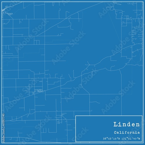 © Rezona, Fototapeta premium Blueprint US city map of Linden, California.