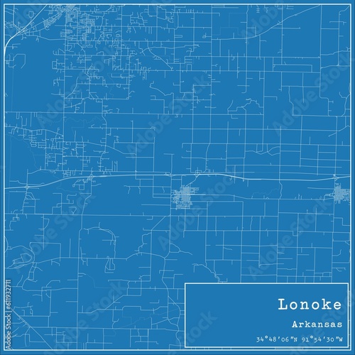 Fototapeta premium Blueprint US city map of Lonoke, Arkansas.