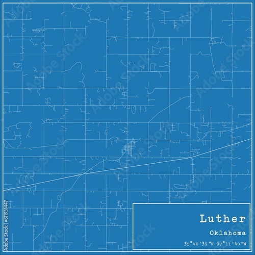 Fototapeta premium Blueprint US city map of Luther, Oklahoma.