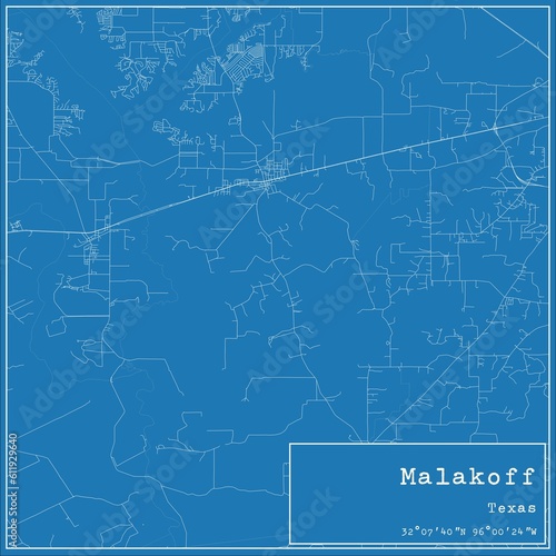 Fototapeta premium Blueprint US city map of Malakoff, Texas.