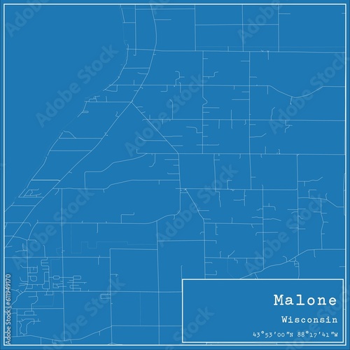 Fototapeta premium Blueprint US city map of Malone, Wisconsin.