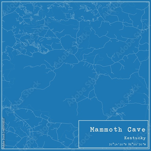 © Rezona, Obraz premium Blueprint US city map of Mammoth Cave, Kentucky.