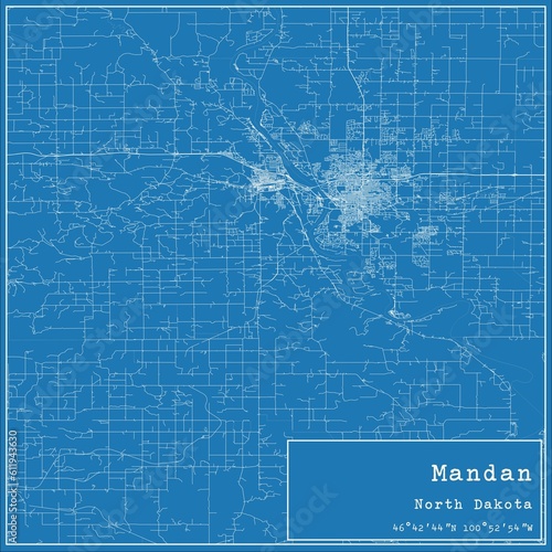 Fototapeta premium Blueprint US city map of Mandan, North Dakota.