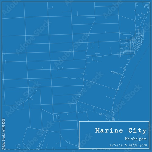 Fototapeta premium Blueprint US city map of Marine City, Michigan.