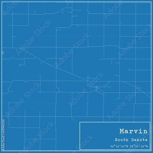 Fototapeta premium Blueprint US city map of Marvin, South Dakota.