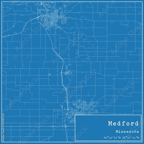 Obraz premium Blueprint US city map of Medford, Minnesota.