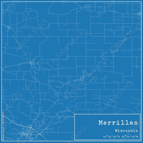Fototapeta premium Blueprint US city map of Merrillan, Wisconsin.