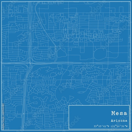 Fototapeta premium Blueprint US city map of Mesa, Arizona.