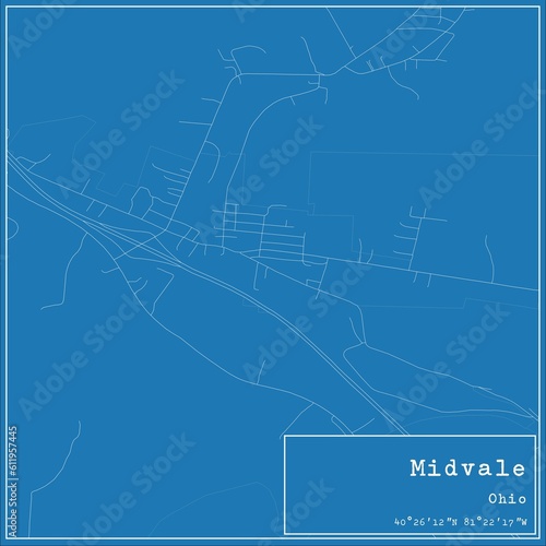 Fototapeta premium Blueprint US city map of Midvale, Ohio.