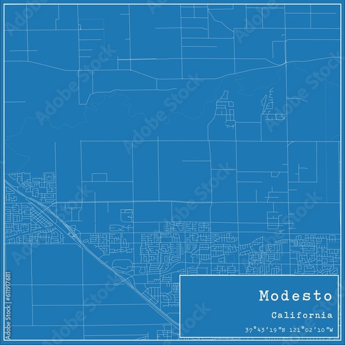 Fototapeta premium Blueprint US city map of Modesto, California.