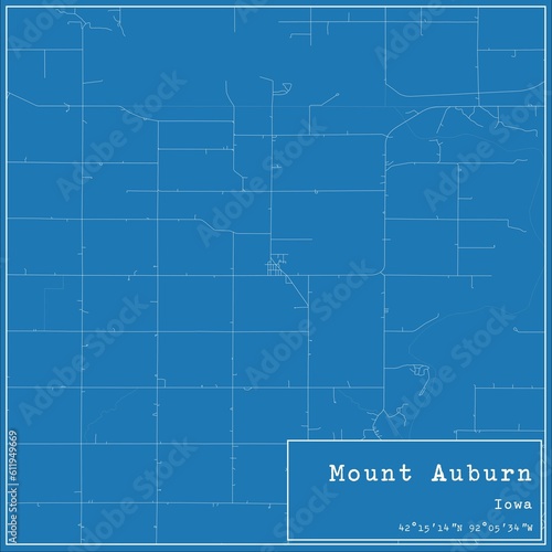 Fototapeta premium Blueprint US city map of Mount Auburn, Iowa.