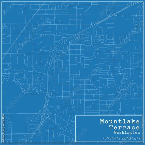 © Rezona, Fototapeta premium Blueprint US city map of Mountlake Terrace, Washington.