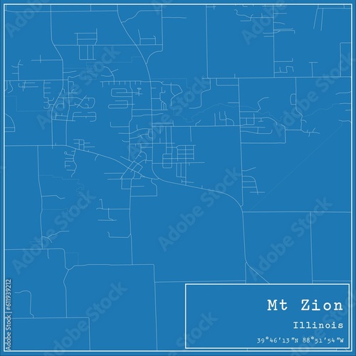 Fototapeta premium Blueprint US city map of Mt Zion, Illinois.