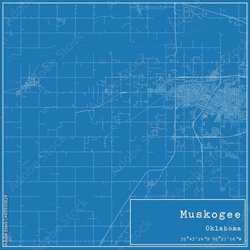 © Rezona, Fototapeta premium Blueprint US city map of Muskogee, Oklahoma.