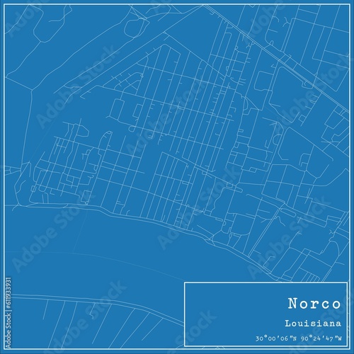 Fototapeta premium Blueprint US city map of Norco, Louisiana.