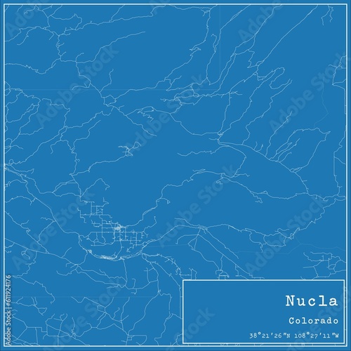Obraz premium Blueprint US city map of Nucla, Colorado.