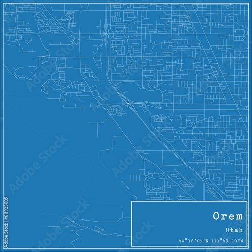 Fototapeta premium Blueprint US city map of Orem, Utah.