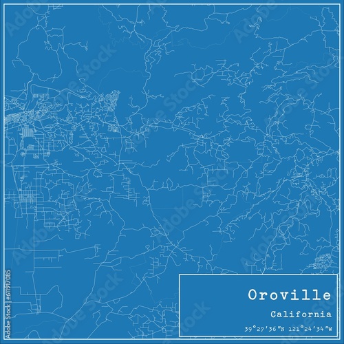 Fototapeta premium Blueprint US city map of Oroville, California.