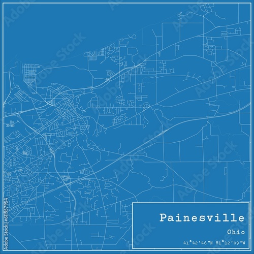 Obraz premium Blueprint US city map of Painesville, Ohio.