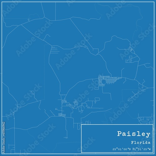 Fototapeta premium Blueprint US city map of Paisley, Florida.