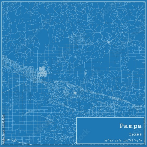 © Rezona, Fototapeta premium Blueprint US city map of Pampa, Texas.