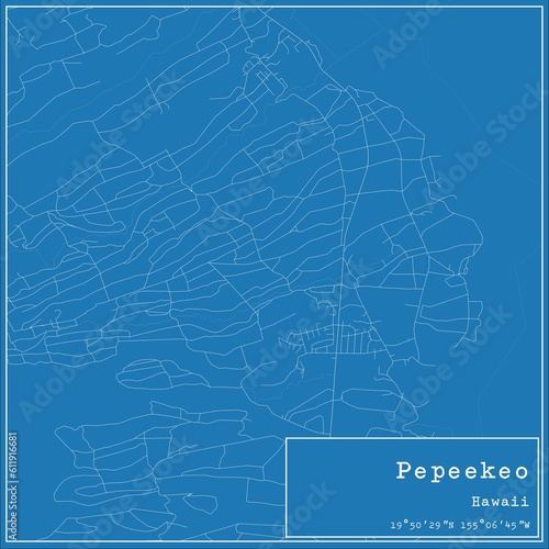 © Rezona, Obraz premium Blueprint US city map of Pepeekeo, Hawaii.