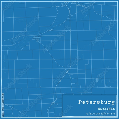 Fototapeta premium Blueprint US city map of Petersburg, Michigan.