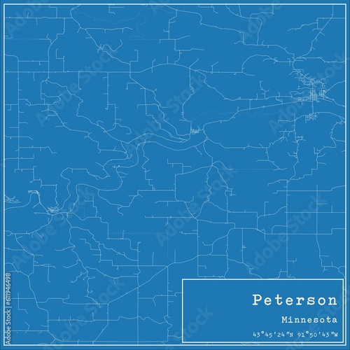 Obraz premium Blueprint US city map of Peterson, Minnesota.