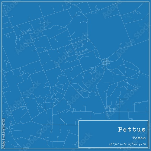 © Rezona, Fototapeta premium Blueprint US city map of Pettus, Texas.