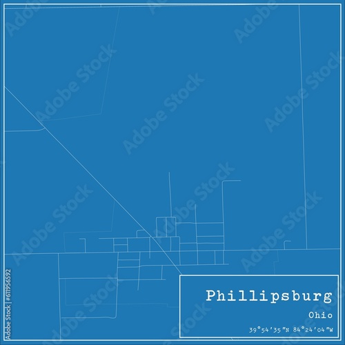 Fototapeta premium Blueprint US city map of Phillipsburg, Ohio.