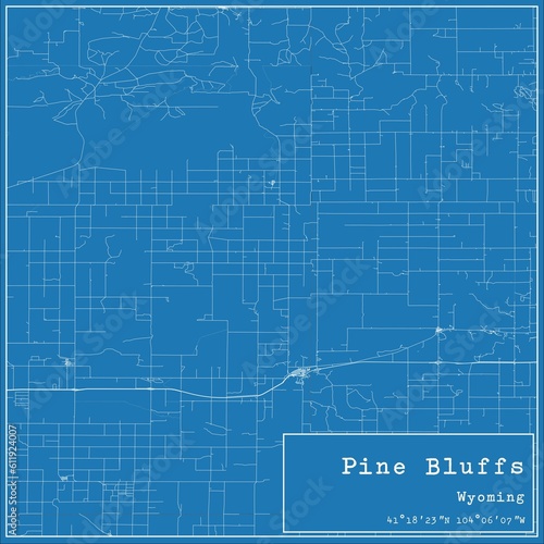 © Rezona, Fototapeta premium Blueprint US city map of Pine Bluffs, Wyoming.