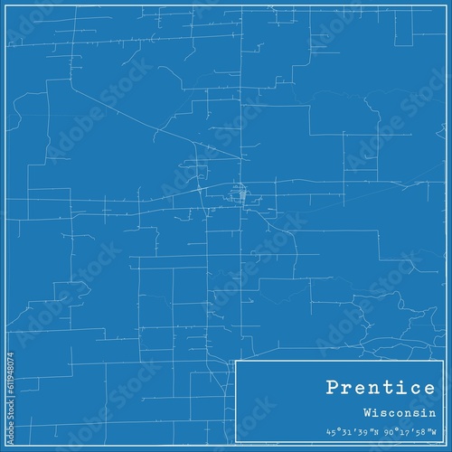 Fototapeta premium Blueprint US city map of Prentice, Wisconsin.