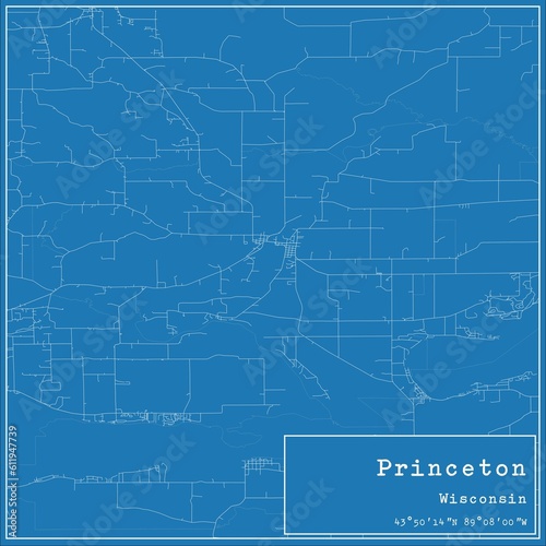Fototapeta premium Blueprint US city map of Princeton, Wisconsin.