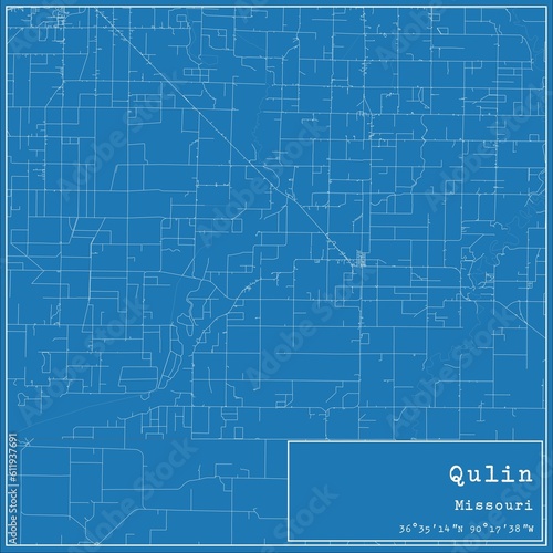 Fototapeta premium Blueprint US city map of Qulin, Missouri.