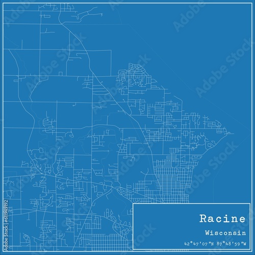 Fototapeta premium Blueprint US city map of Racine, Wisconsin.